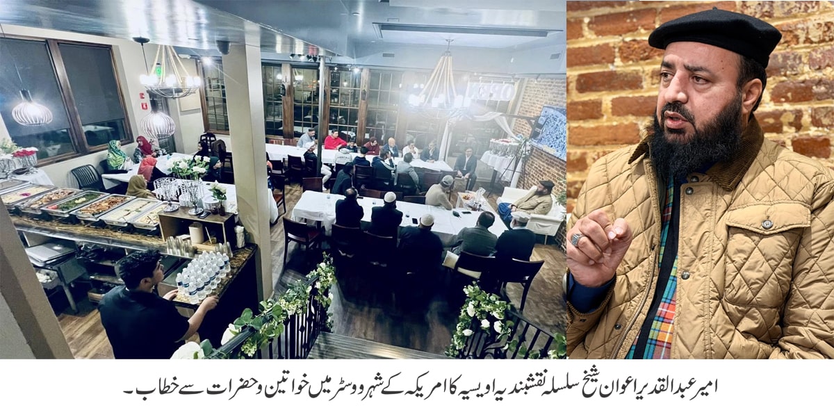امیر عبدالقدیر اعوان شیخ سلسلہ نقشبندیہ اویسیہ کا امریکہ کے شہر ووسٹر میں خواتین و حضرات سے خطاب۔
